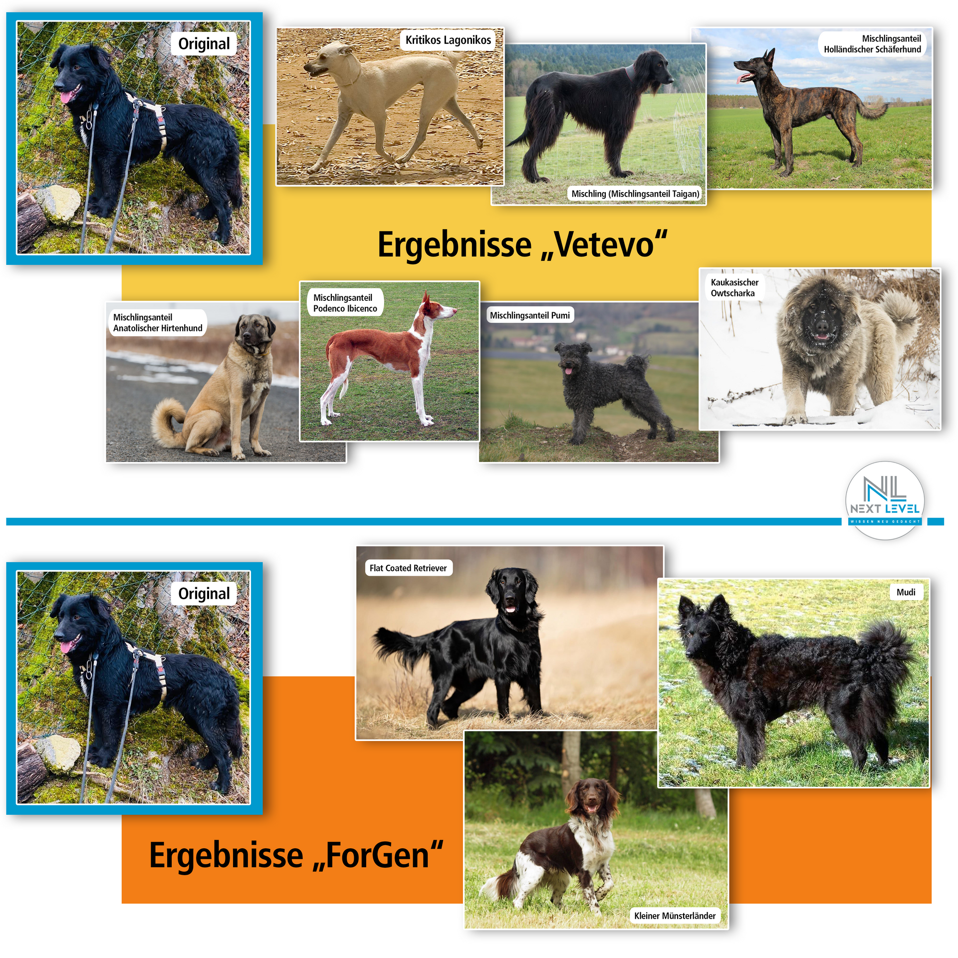 - Ignoranz gegenüber dominanten Rassen: Selbst häufige Rassen wie der Flat Coated Retriever, prominent in ForGens Ergebnissen, wurden von Vetevo übersehen.