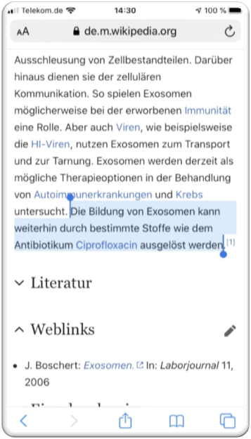 [13] Exosom (Vesikel) https://de.m.wikipedia.org/wiki/Exosom_(Vesikel)