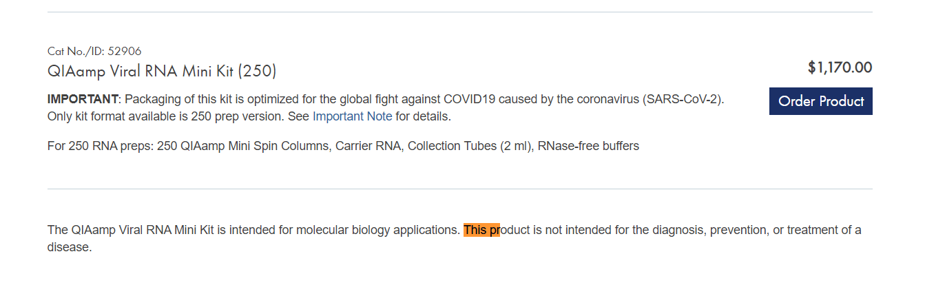 Jeder Testkithersteller vermerkt in seiner Betriebsanleitung, dass dieser Test lediglich für Forschungszwecke geeignet ist und nicht für diagnostische Zwecke eingesetzt werden kann.
